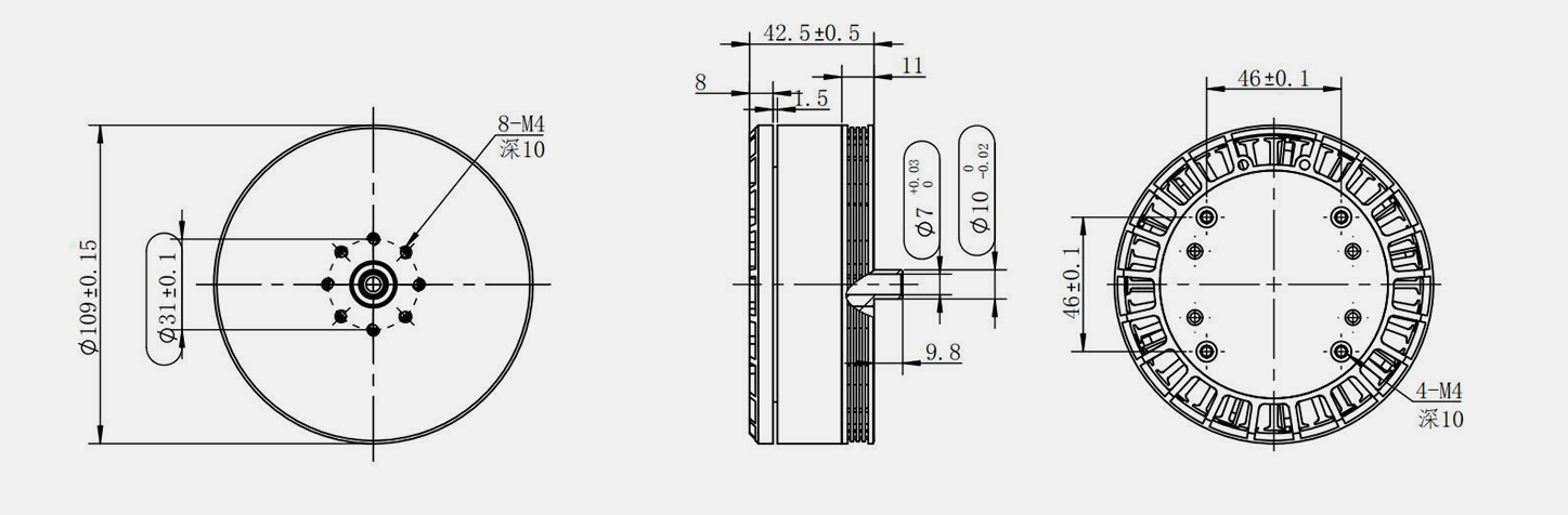 | 85 | 12S-14S | 26.5 | 11-13 | 1.45 | 100 | 15 | φ109*42.5 | φ100*18 | 8-M4*10 | 36" | ||||||||||